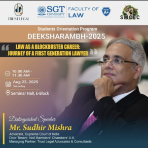 | Student’s orientation program, Deeksharambh 2025, invites Sudhir Mishra as a distinguished speaker on the title – Law as a Blockbuster career: Journey of a first-generation lawyer. | August 2025 |