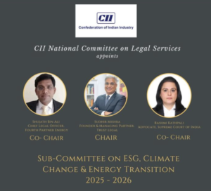 | CII National Committee on Legal Service appoints Sudhir Mishra as Chair for the committee on ESG Climate Change and Energy Transition 2025-2026. | September 2025 |